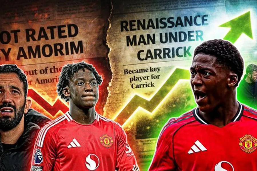 鲁本·阿莫林将被视为一名彻底失败的主教练载入曼联史册,然而他有一个贡献不容忽视,就是清洗了球队的一些不适合的球员。拉什福德、桑乔、安东尼、加纳乔和霍伊伦德等人,都在他任下被出售或者租借。险些被阿莫林送走的20岁红魔青训中场科比·梅诺,幸运地撑到了换帅后,在卡里克的4231阵型里重新找到了位置。
